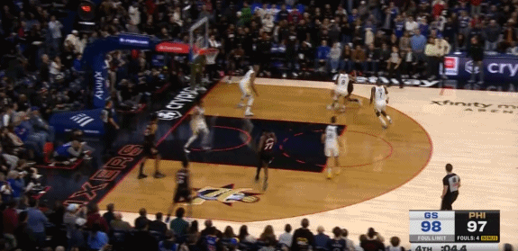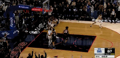 最后2秒,马克西中投三不沾,探花郎埃奇库姆篮下拔地而起,一飞冲天直接空接补篮准绝杀,只给勇士留下了0.9秒。