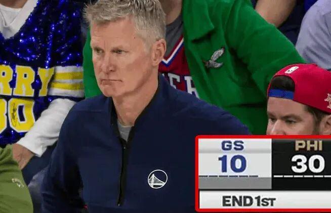 今天库里巴特勒同时缺阵,75人上来就狂干勇士,勇士首节25投仅4中命中率16%,三分16中2仅得到10分,首节就落后75人20分,创科尔时代勇士单节最低分,此前最低11分。