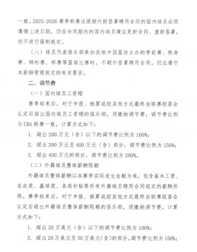 这次的工资帽制度,在本赛季是试行阶段,下赛季,也就是2026-2027赛季将正式运行。我们来看一下此次规定的几项具体细则: