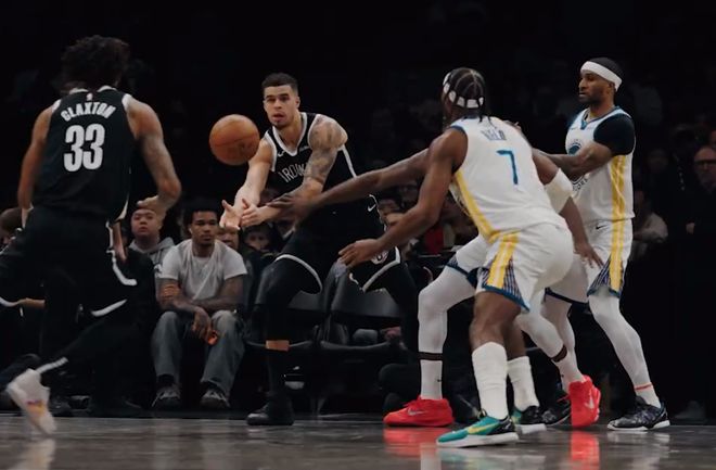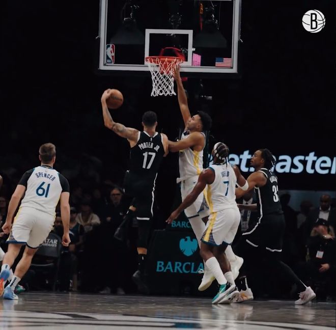 小波特末节遭遇的防守强度是前所未有的,因为篮网只有他能个人创造得分,勇士一度是3-4人包夹他,这场投名状真的够了。