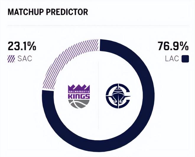 赛前,美媒ESPN对本场比赛进行了胜率预测,快船队胜率高达76.9%,貌似还是赛季首次这么被看好,国王胜率则仅有23.1%,同样是倒数,也是有区别的。