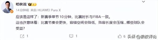 结合到辽宁媒体人哈秋此前同样在社媒爆料,新赛季单节10分钟,比赛时长与FIBA一致。