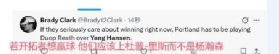 正如美国网友在社媒呼吁:“如果开拓者想要赢球,就应该使用里斯,而不是杨瀚森。”