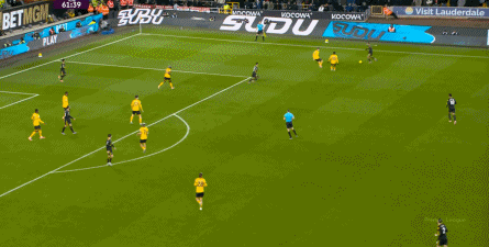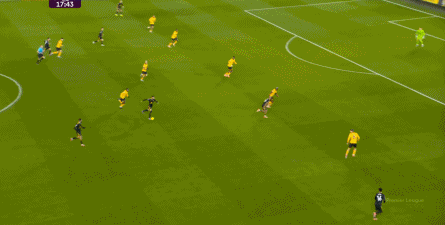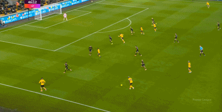 丢球之后,狼队的反扑逐渐上线,通过中场区域的争夺得手之后,同样使用343阵型的狼队也将方向瞄准到了曼联的两肋: