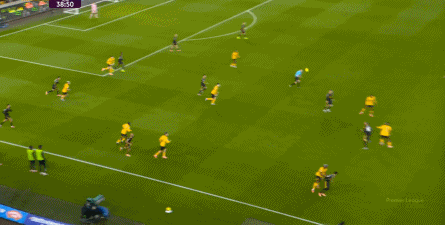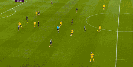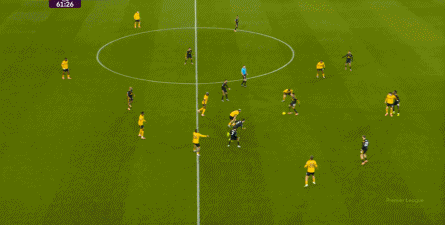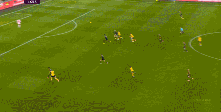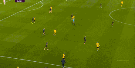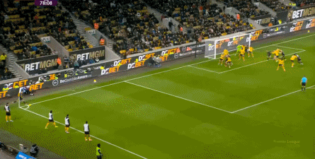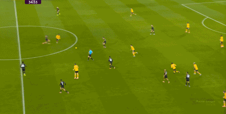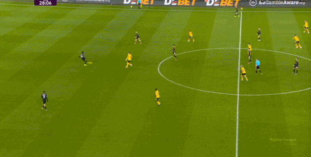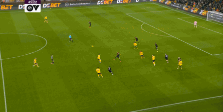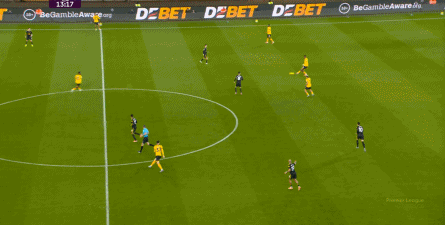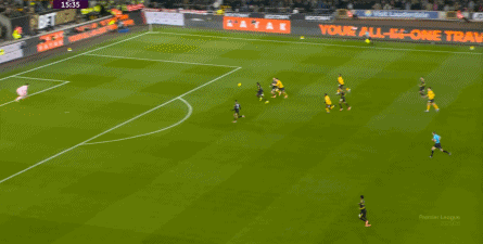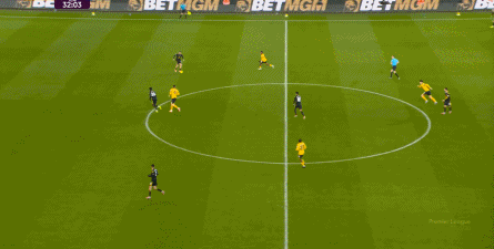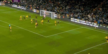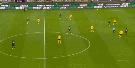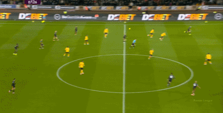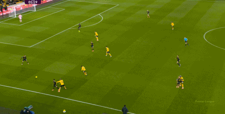 正当曼联即将带着1-0的比分进入中场休息的更衣室的时候,曼联几乎在最后一次防守中出现了问题,面对狼队的连续传中,阿玛德-迪亚洛出现了防守上的松懈: