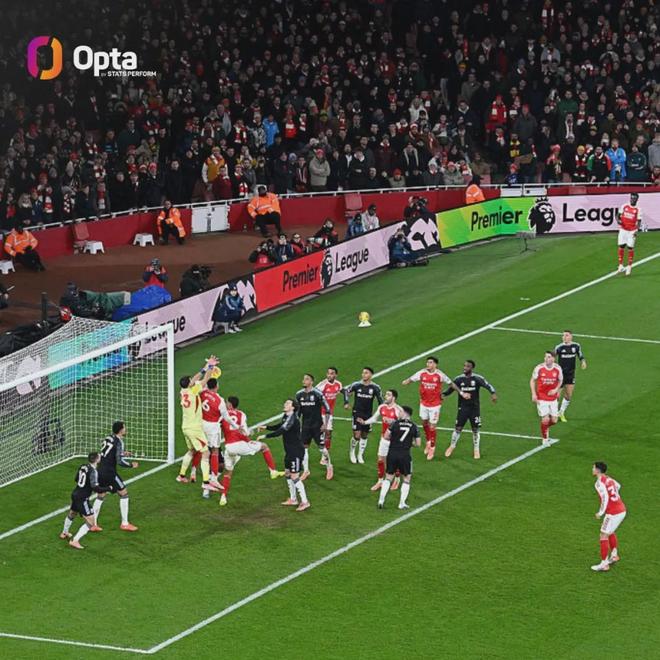 加布里埃尔的进球是阿森纳2025年通过角球打进的第17个英超进球。单一自然年里角球进球数仅次于2012年的曼联(18球)。