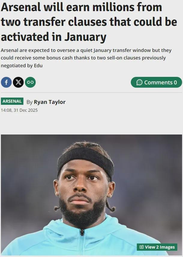 镜报和伦敦足球记者RT发文,阿森纳可能会因为两个卖人条款而获得额外的收入,塔瓦雷斯和布鲁克·诺顿-库菲已经引起了其他球队的兴趣。